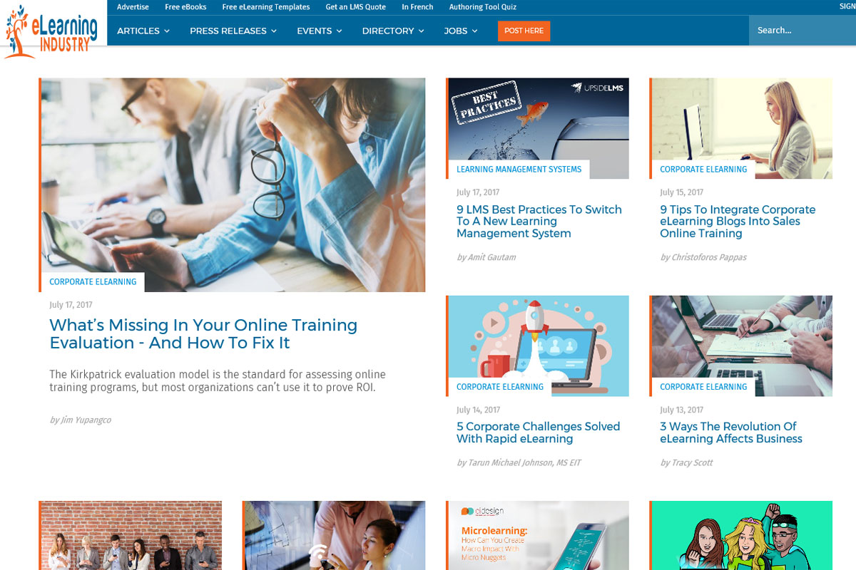 eLearning Industry is the largest online community of elearning professionals in the industry, and was created as a knowledge-sharing platform to help elearning professionals and instructional designers connect and stay up to date with the latest industry news and technologies, and find projects or jobs.